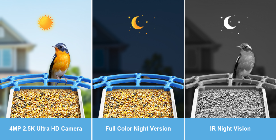 2/ Full color night vision bird watching cameras also record colorful videos at night, never miss the exciting moments of birds, and create rich materials for recording bird video stories for you